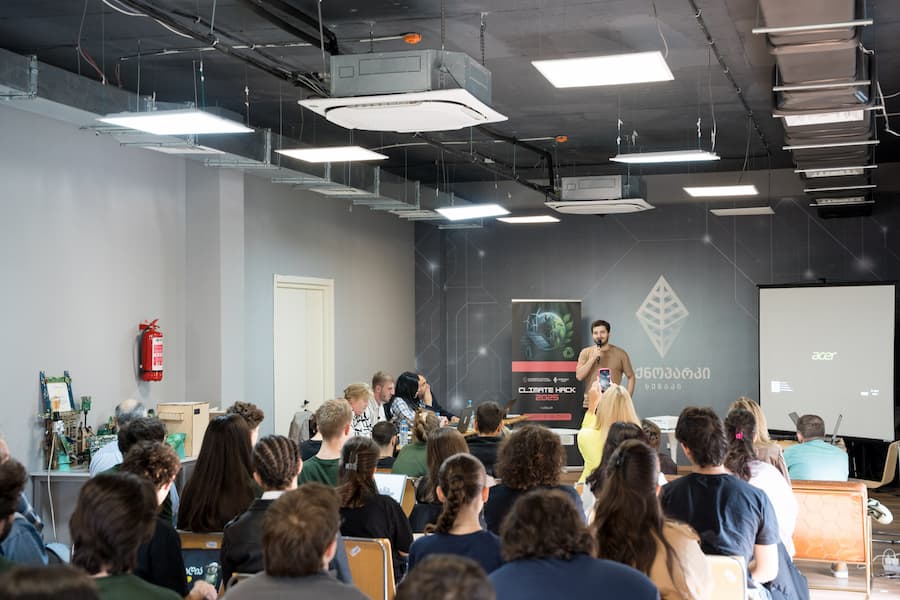 კლიმატის ჰაკათონში – „ClimateChak 2025”, საქართველოს მასშტაბით, ახალგაზრდებისგან შემდგარმა 20 გუნდმა, მენტორებთან ერთად, კლიმატის ცვლილების ინოვაციური გადაწყვეტის იდეებსა და პროტოტიპების დახვეწაზე იმუშავეს.